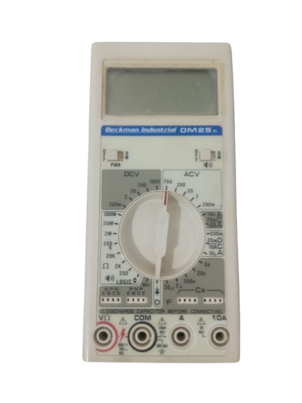 O multímetro digital DM25XL da Beckman Instruments é um equipamento de medição versátil e compacto. Ele possui uma ampla gama de funções, incluindo medições de tensão DC e AC, corrente DC e AC, resistência, capacitância, teste de diodos e transistores hFE. Seu design é feito de material plástico e suas dimensões são aproximadamente 80 x 165 x 38 mm. Ele opera com uma bateria de 9V.